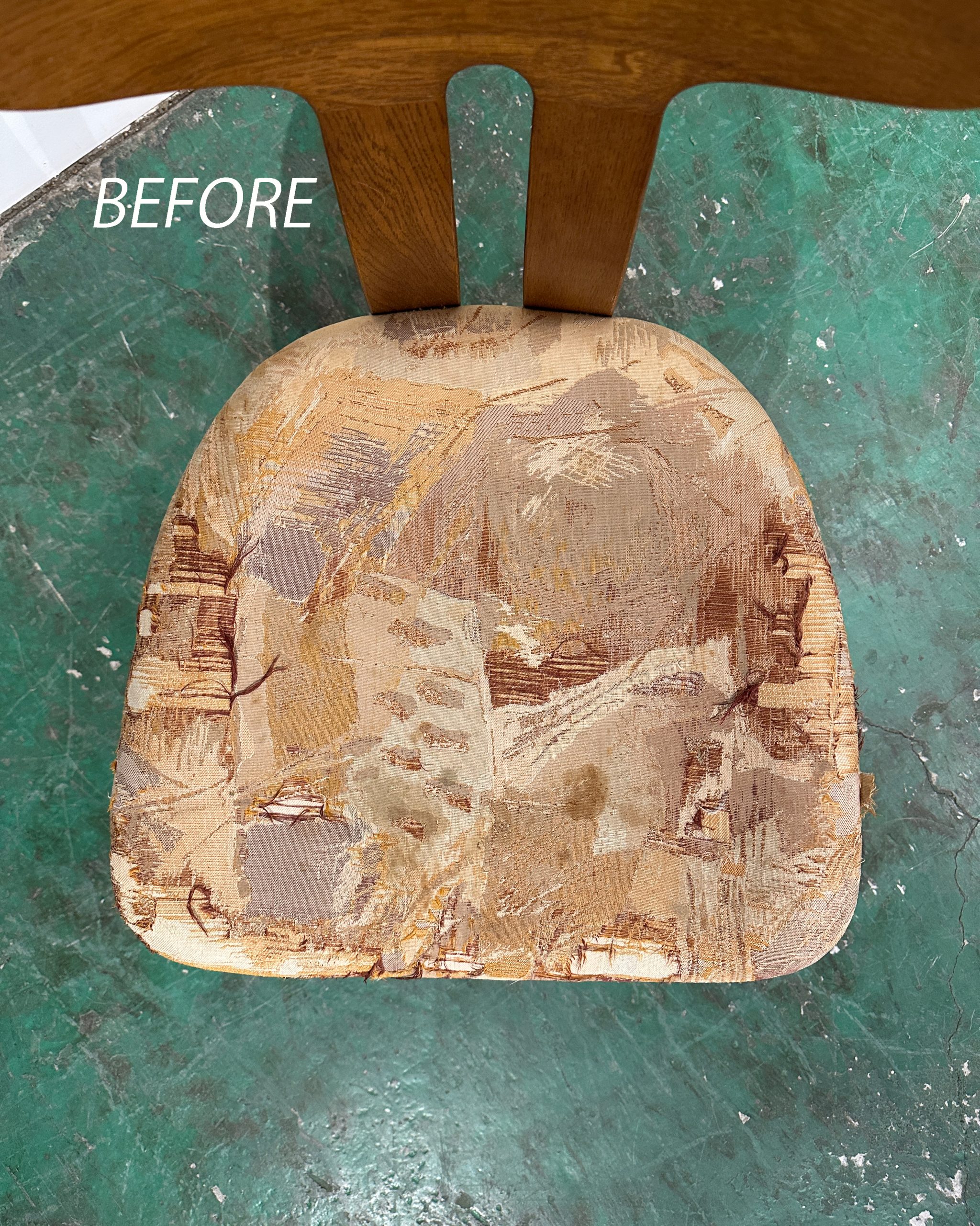 長年使用して座面の破れが目立つようになったとのことで、修理を依頼いただきました。